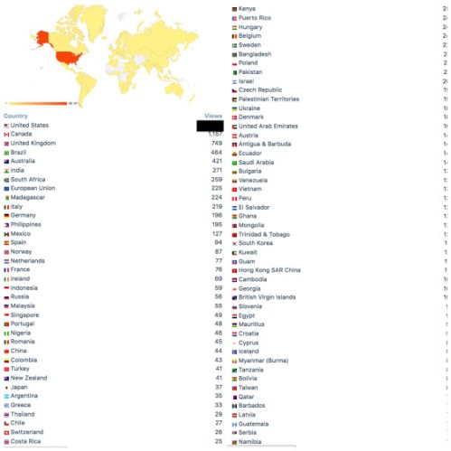 (I blocked out the numbers on the United States because my point is not to show how many people have viewed my blog, but just how far it can reach!)